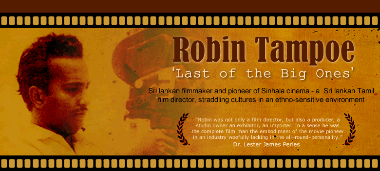 Rabindra Commarasamy Tampoe, or Robin Tampoe was an all-round film personality who made a significant contribution to Sri Lanka's Sinhala-language cinema. Born in Jaffna on the 29th December 1930, R.C. Tampoe began his film career at the age of 25 years and directed and produced 15 films in Sinhala between 1958 and 1974. His works take on more significance when one considers that Tampoe was one of Sri Lanka's rare indigenous Tamil filmmakers who catered for the island's Sinhala majority. Robin Tampoe had given up law studies to go into film.